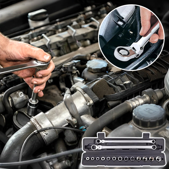 Vous connaissez cette frustration face à un écrou inaccessible ? La Clé plate à cliquet ProCliq™ est née pour résoudre ce problème quotidien des bricoleurs et mécaniciens. Imaginez pouvoir atteindre n'importe quelle fixation, même dans les recoins les plus étroits de votre moteur ou sous votre évier. Ce kit complet de 15 pièces combine la polyvalence d'une clé plate traditionnelle avec l'efficacité révolutionnaire d'un mécanisme à cliquet. Fini les mouvements limités et les jointures écorchées !